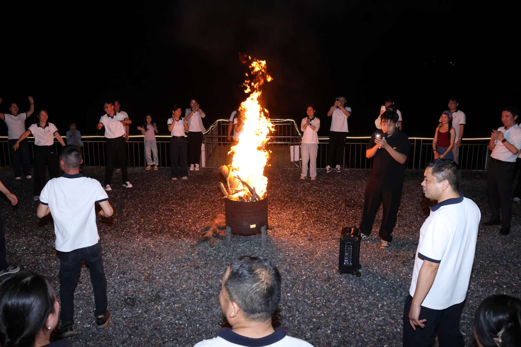 Када је ноћ потпуно пала, ломача је планула на отвореном терену. Скупили смо се за руке у кругу, светлост ватре је обасјавала свако насмејано лице. Песме, аплаузи и клицање преплитали су се под ноћним небом.